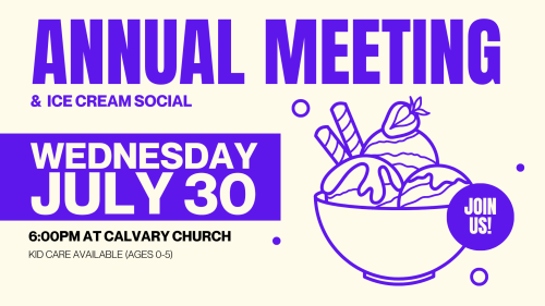 Every year, as a congregation we look back to celebrate what God has done through Calvary's people and ministries over the past year, and we look ahead to intentionally and responsibly plan for the year to come. Click below to read our Annual Report, or pick-up a copy at the Welcome Desk, and make plans to join us for the Annual Meeting.